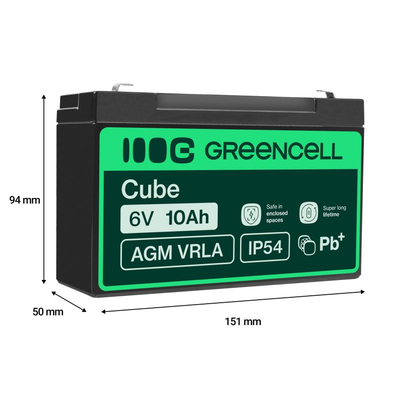 Акумулятори AGM призначені для роботи в найекстремальніших умовах. Використані скляні волокна роблять електроліт щільно закритим в корпусі, що дозволяє використовувати акумулятор в будь-якому положенні, не побоюючись витоку. Це особливо важливо для акумуляторних іграшок, які піддаються різним видам ударів. Це робить акумулятори Green Cell AGM повністю безпечними для користувачів.