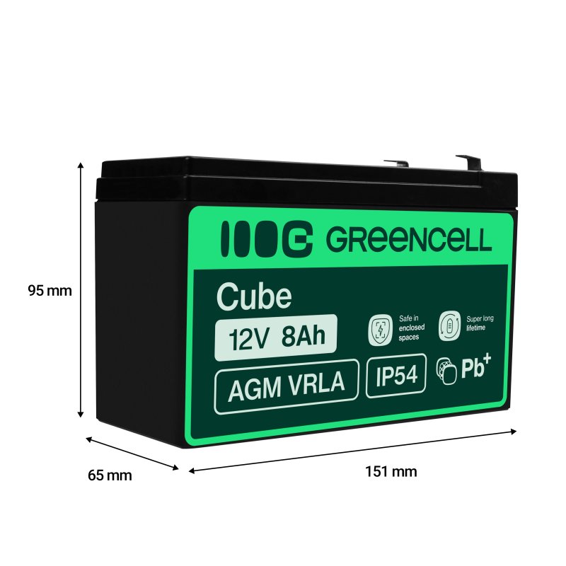 Green Cell Cell® AGM 12V 8Ah Свинцева батарея Unbemann UPS Система UPS Резервна батарея системи UPS