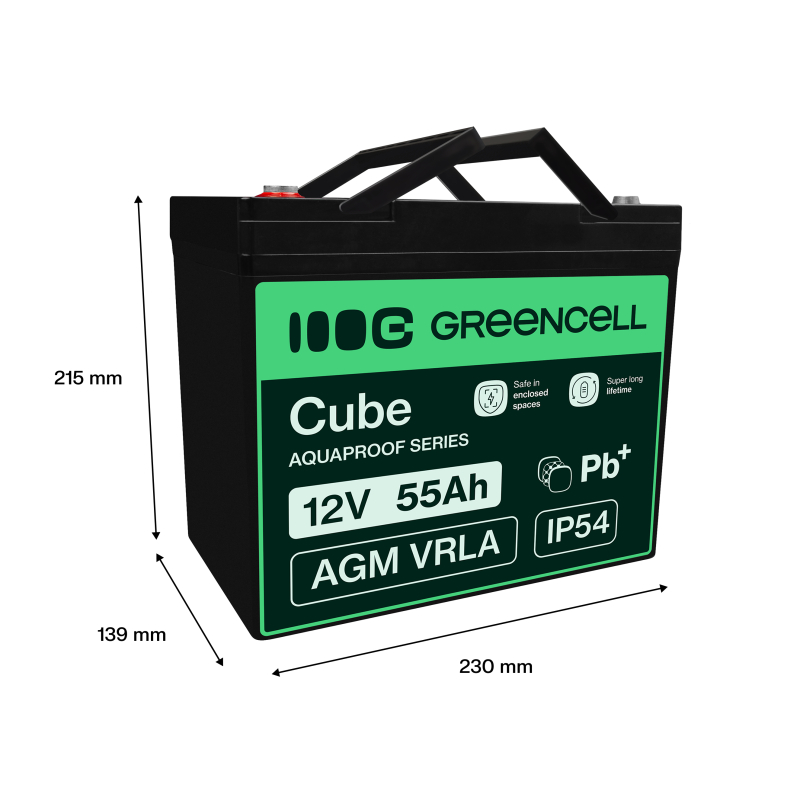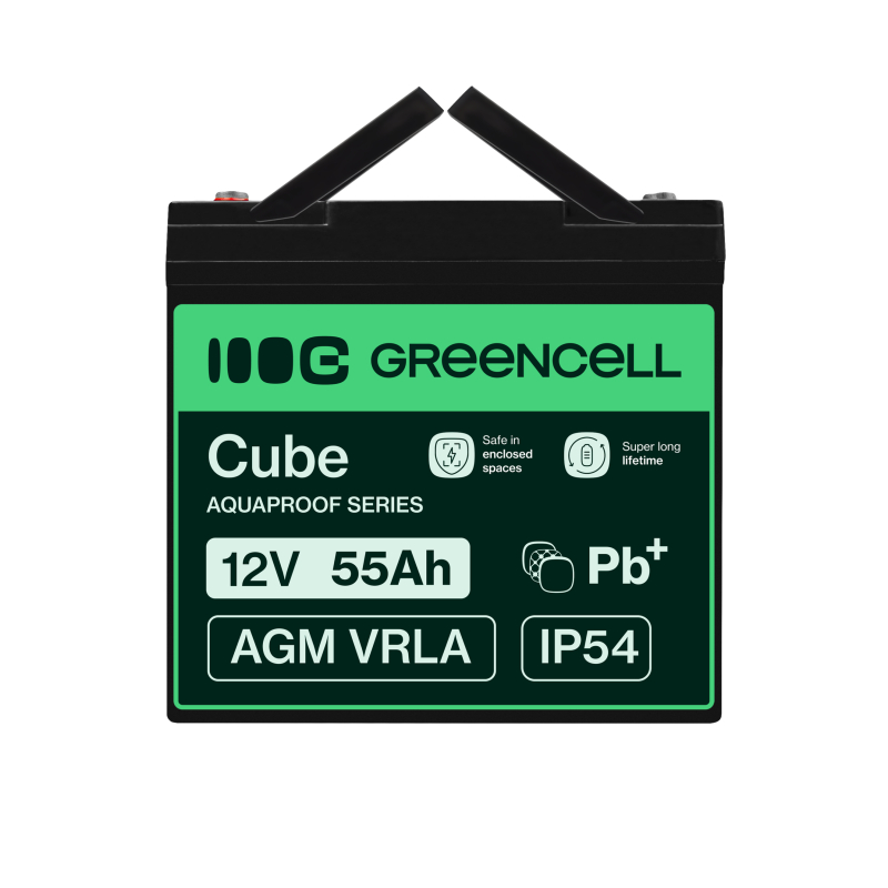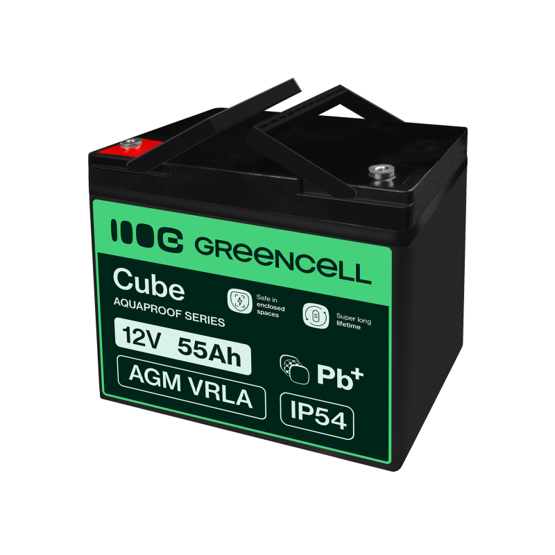 Green Cell CUBE AGM IP54 12V 55Ah VRLA акумулятор для рибальських човнів, скутерів, газонокосарок, тракторів.